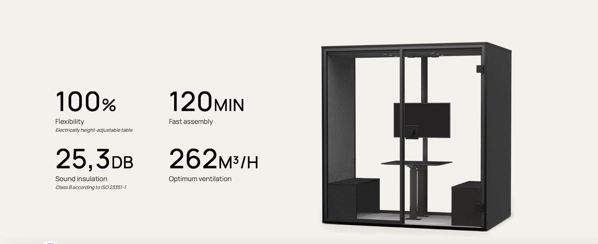 With its generous space, cozy interior, and outstanding soundproofing, MEET is your haven for meetings and collaboration. Naturally, it also effortlessly accommodates phone calls, video conferences, and focused work.