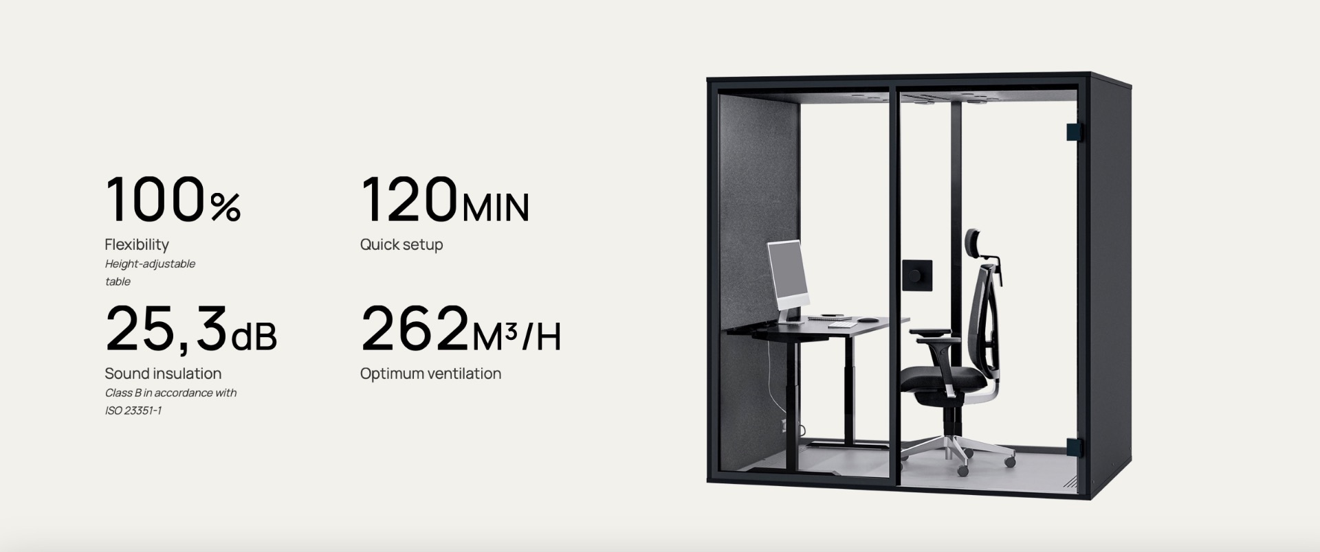 With its generous space, cozy interior, and excellent soundproofing, WORK is your ideal space for uninterrupted and focused work. Naturally, it also handles phone calls and video conferences with ease.