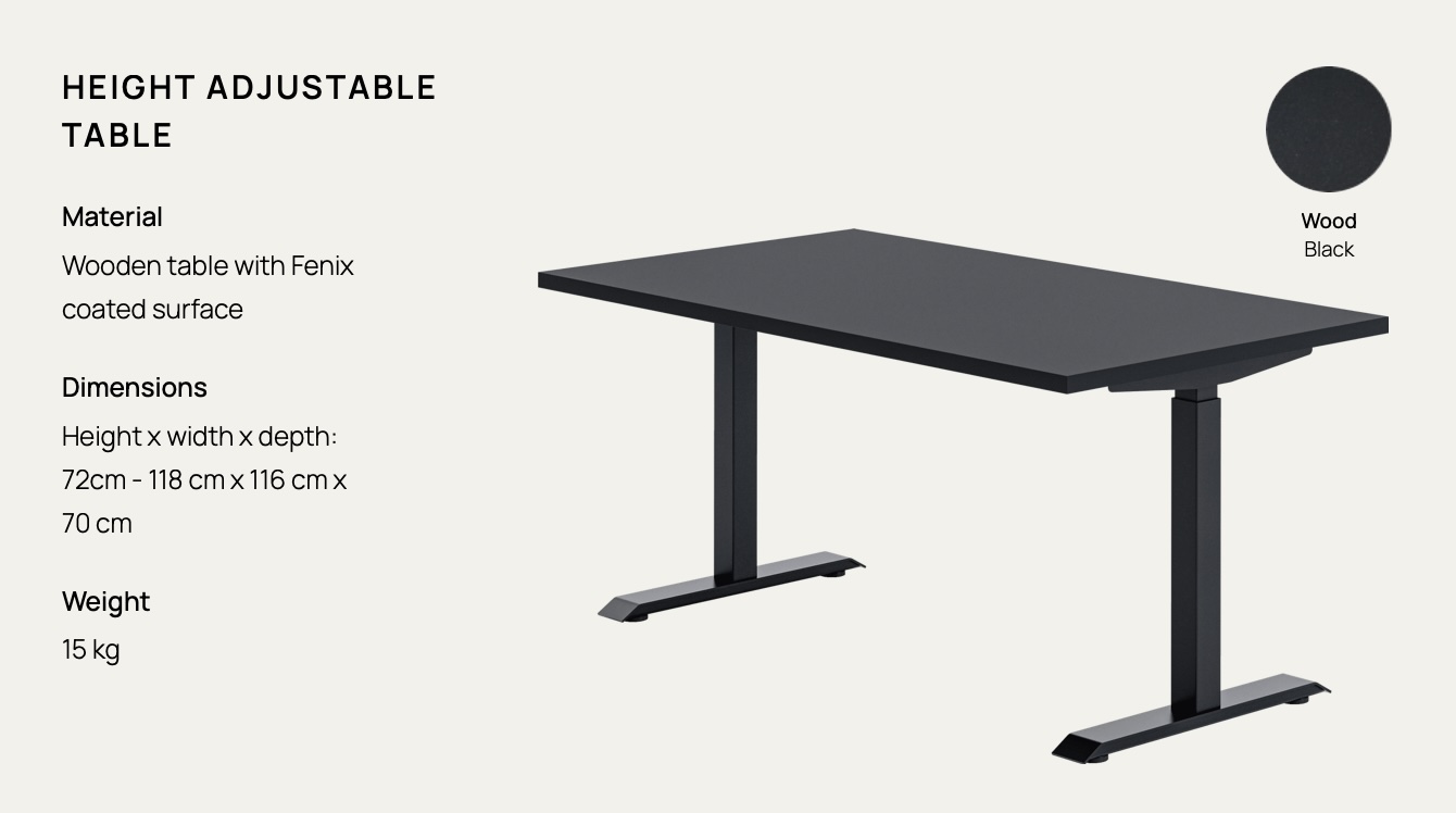 Thanks to the height-adjustable table, the WORK can be tailored to a wide range of needs.